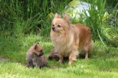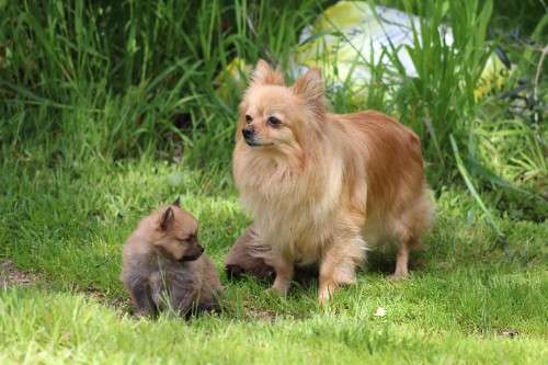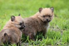 The puppies have super thick dence coats ( male is very thick) and are very small in size. They are going to mature into very attractive little dogs
