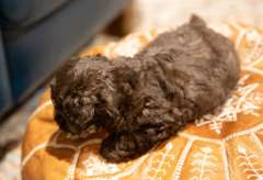 We are proud to present 2 beautiful purebred miniature poodle puppies, only one brown boy available. Both parents are genetically tested and clear of inheritable diseases. Father is black, 35cm tall and mom is brown, 37cm. Both parents come from quality breeding and have an excellent conformation and personalities.